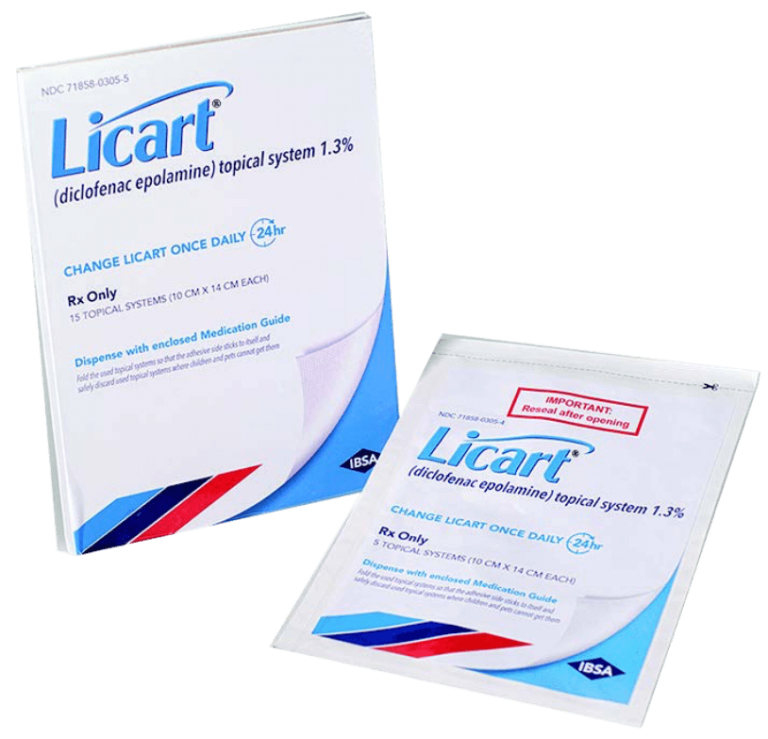 LICART contains diclofenac epolamine, which is a nonsteroidal anti-inflammatory drug (NSAID), and is indicated for the topical treatment of acute pain due to minor strains, sprains, and contusions.