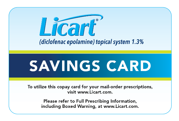 With the Licart Copay Savings Card, commercially insured patients can receive instant savings when purchasing Licart at any retail pharmacy.
